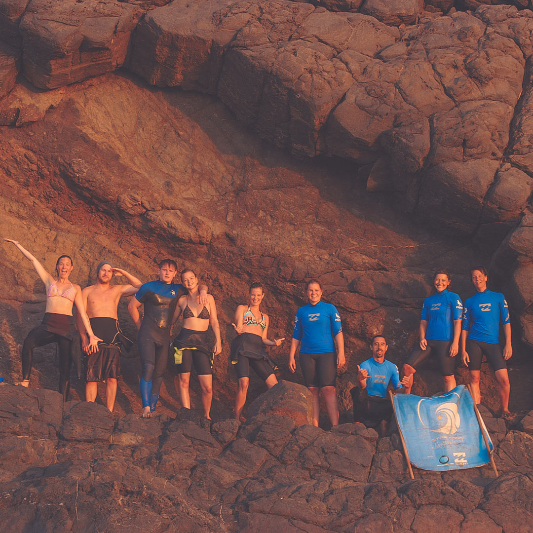 Vi undervisar medvetet i små grupper och skapar en avslappnad och familjär atmosfär. På så sätt kan vi anpassa oss efter dina frågor, ditt tempo och din surfnivå – så att du lär dig surfa säkert och med glädje.